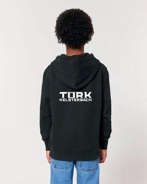 Hochwertiger Bio-Kapuzenpullover für Kinder mit doppellagiger Kapuze, weichem Fleece und Kängurutasche. Ohne Kordelzug – perfekt für Alltag, Verein & Mini-Me-Looks.