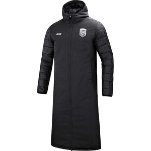 Langer, wattierter Bankmantel mit wasserabweisender PU-Beschichtung – ideal für kalte Spieltage & Pausen am Spielfeldrand.